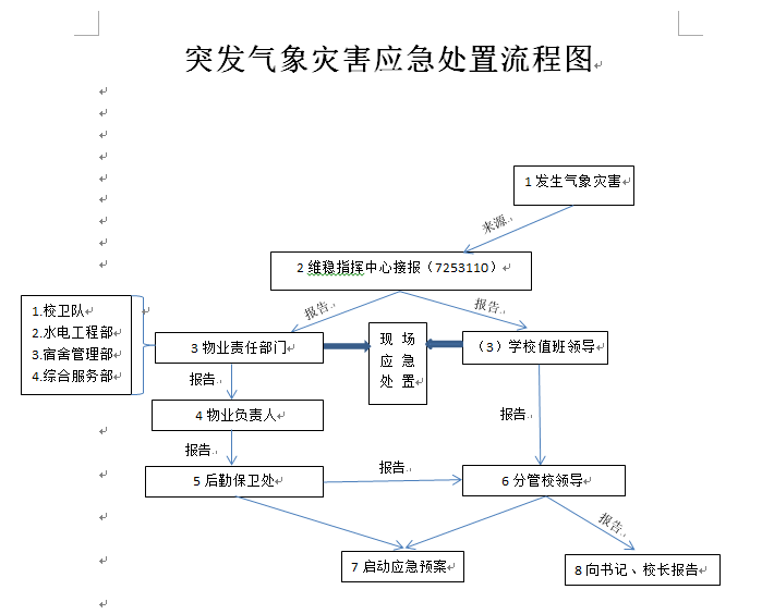 4.灾后现场的清理、处理工作。(由后勤保卫处牵头负责,其他单位配合)