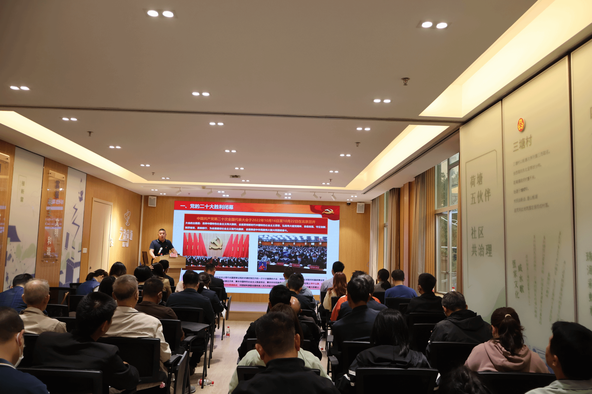 签约授牌仪式结束后,两个党组织联合开展了第一季度讲党课活动。第一直属党支部党员教师吴成钢教授以“以中国式现代化全面推进中华民族伟大复兴——深入学习贯彻党的二十大精神”为题,为两个党组织的60多名党员进行了党的二十大精神宣讲。