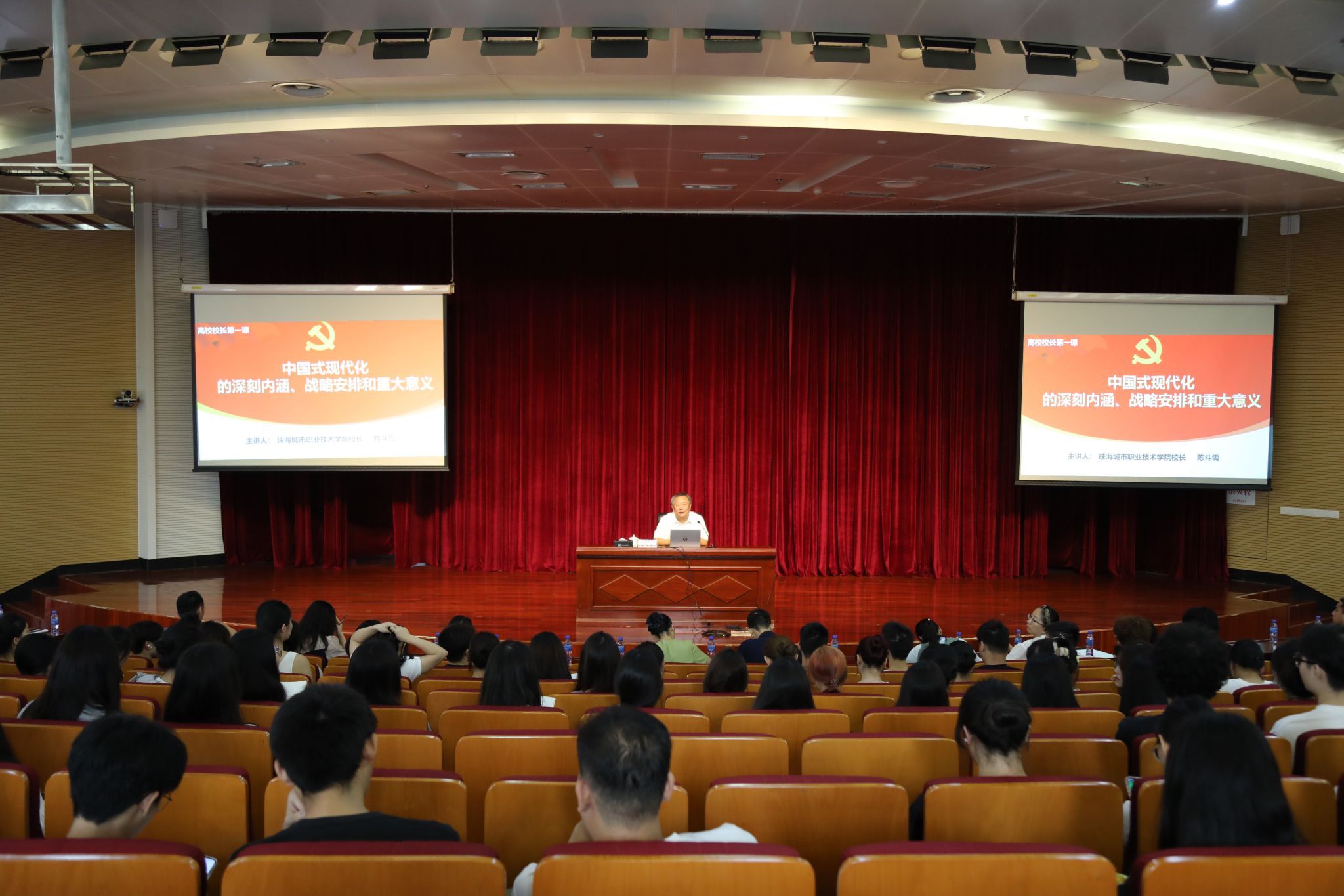 9月11日上午,校长陈斗雪以《中国式现代化的深刻内涵、战略安排和重大意义》为题,在行政楼学术报告厅为我校200余名2022级学生讲授“思政第一课”。