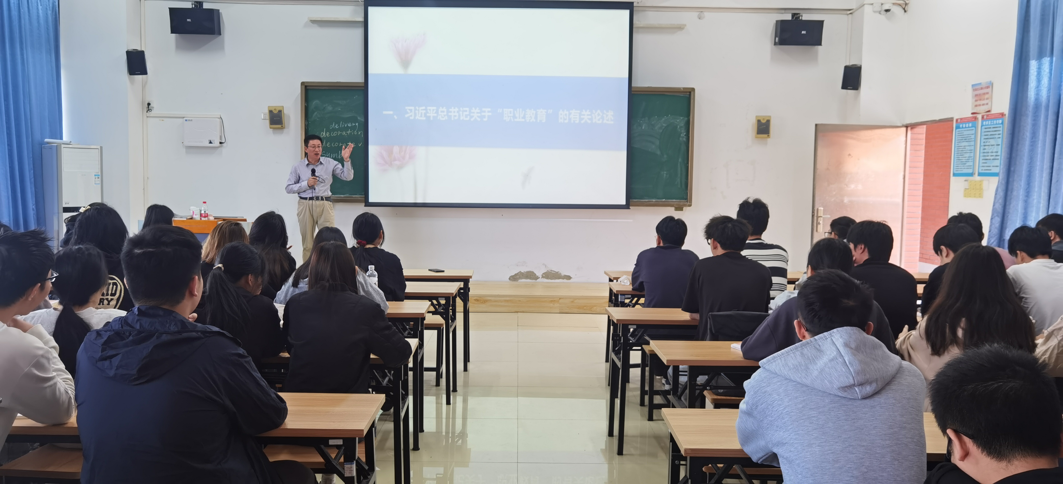 刘向阳副校长所授思政课专题为《职业教育前途广阔,大有可为》,他全面梳理、传达了习近平总书记关于职业教育的重要指示精神,并结合学校实际,阐述了深化产教融合,加强校企合作,推进职业教育赋能产业高质量发展。