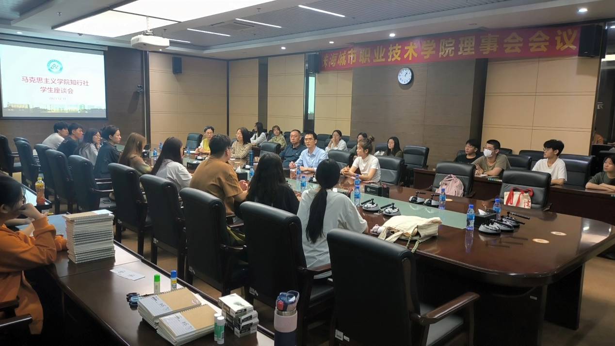 为深入开展学习贯彻习近平新时代中国特色社会主义思想主题教育,落实立德树人根本任务,结合学院实际深入开展调查研究,倾听学生的心声和了解学生的诉求,2023年12月11日下午,马克思主义学院院长白立强,副院长欧阳效升、蔡建文,知行社指导老师杨敏与知行社的同学们在行政楼212会议室召开座谈会。
