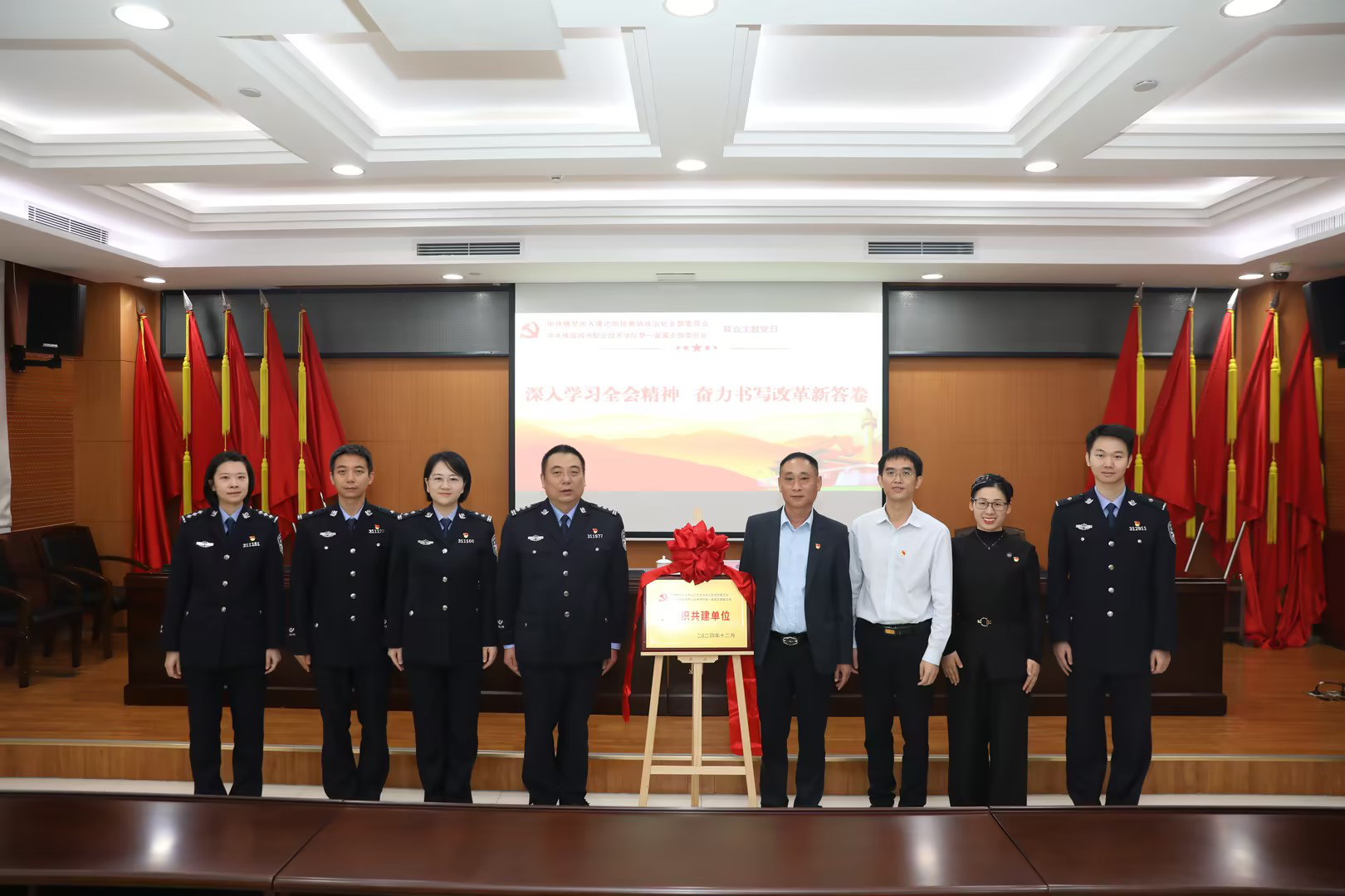 12月6日,为深入学习贯彻习近平新时代中国特色社会主义思想和党的二十届三中全会精神,主动服务横琴粤澳深度合作区建设和推进省域“双高校”建设项目落地落实,第一直属党支部全体党员赴横琴出入境边防检查站开展党建共建签约仪式暨联合主题党日活动。