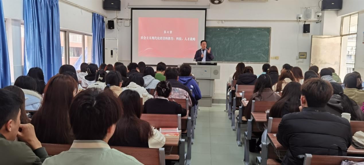 4月1日上午,校党委委员、副校长刘向阳来到崇文楼5304教室,与其所联系的马克思主义学院教师王林共同为同学们讲授了一堂题为“社会主义现代化建设的教育、科技、人才战略”的思政课。