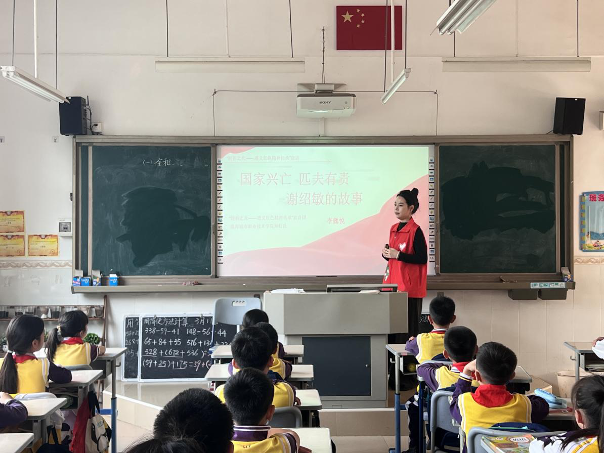 第一场宣讲中,宣讲员李懿悦生动讲述了在民族危亡时刻,谢绍敏以血书“还我青岛”表达爱国决心、唤醒民众抗争意识的壮举。小学生们认真聆听,深刻体会到“国家有难、匹夫有责”的深刻内涵,感受到先辈们为了国家独立和民族尊严不惜牺牲一切的伟大精神。