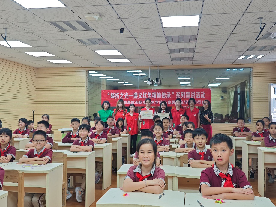 为传承红色基因、弘扬遵义会议精神,4月16日下午,马克思主义学院知行社“转折之光——遵义红色精神传承”志愿宣讲团走进珠海市香洲区金钟小学,以生动的故事和丰富的形式,为金钟小学305班、604班的同学们带来了一场别开生面的红色教育课。