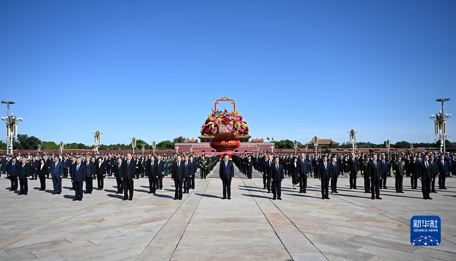 9月30日上午,党和国家领导人习近平、李强、赵乐际、王沪宁、蔡奇、丁薛祥、李希、韩正等来到北京天安门广场,出席烈士纪念日向人民英雄敬献花篮仪式。新华社记者 谢环驰 摄
