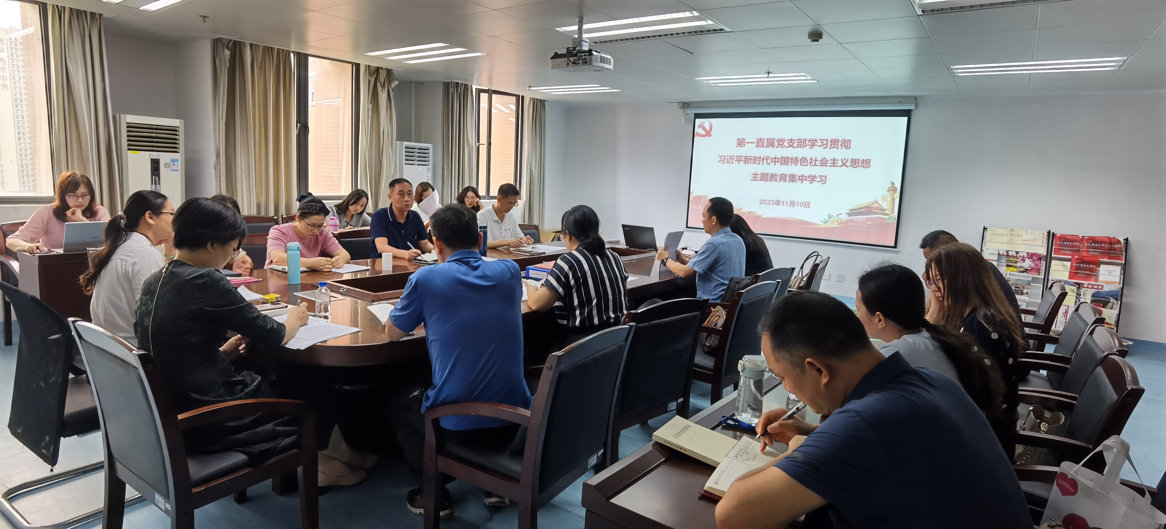 11月10日,第一直属党支部召开学习贯彻习近平新时代中国特色社会主义思想主题教育第二次集中学习会,会议由第一直属党支部书记白立强同志主持,支部全体党员参加会议。