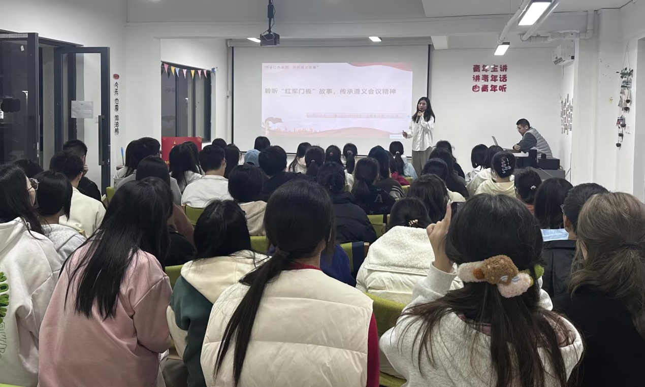 12月26日,马克思主义学院知行社“转折之光——遵义红色精神传承”志愿宣讲团成员陈美桦在学校“青年之家”以“忆‘红军门板’故事 传承遵义会议精神”为主题,开展宣讲活动,大家一起回溯革命历史,体悟遵义会议精神。此次宣讲活动是该志愿宣讲团自今年11月份入选“2024年全国大学生沂蒙精神和遵义会议精神志愿宣讲团”后,开展的首场“遵义会议精神”宣讲活动。