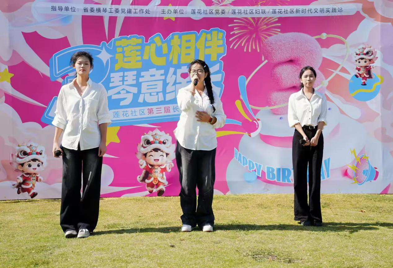 11月25日,应横琴粤澳深度合作区莲花社区之邀,马克思主义学院知行社前往横琴花海长廊五号驿站,为莲花社区“莲心相伴,琴意绵长”第三届长者生日会呈上精彩节目。社区150位寿星长辈齐聚一堂,共赴这场满含爱与欢乐的温馨之约。