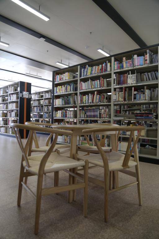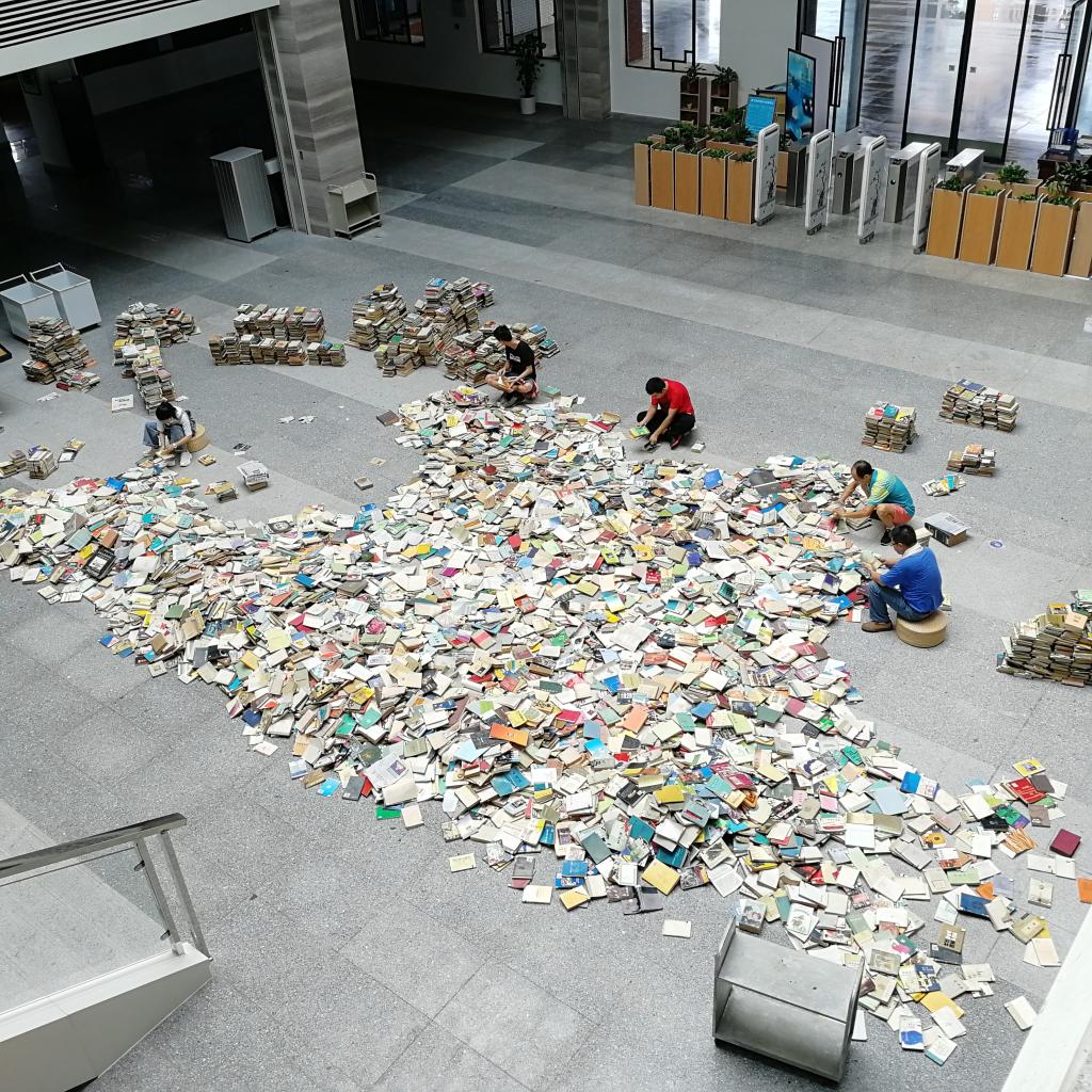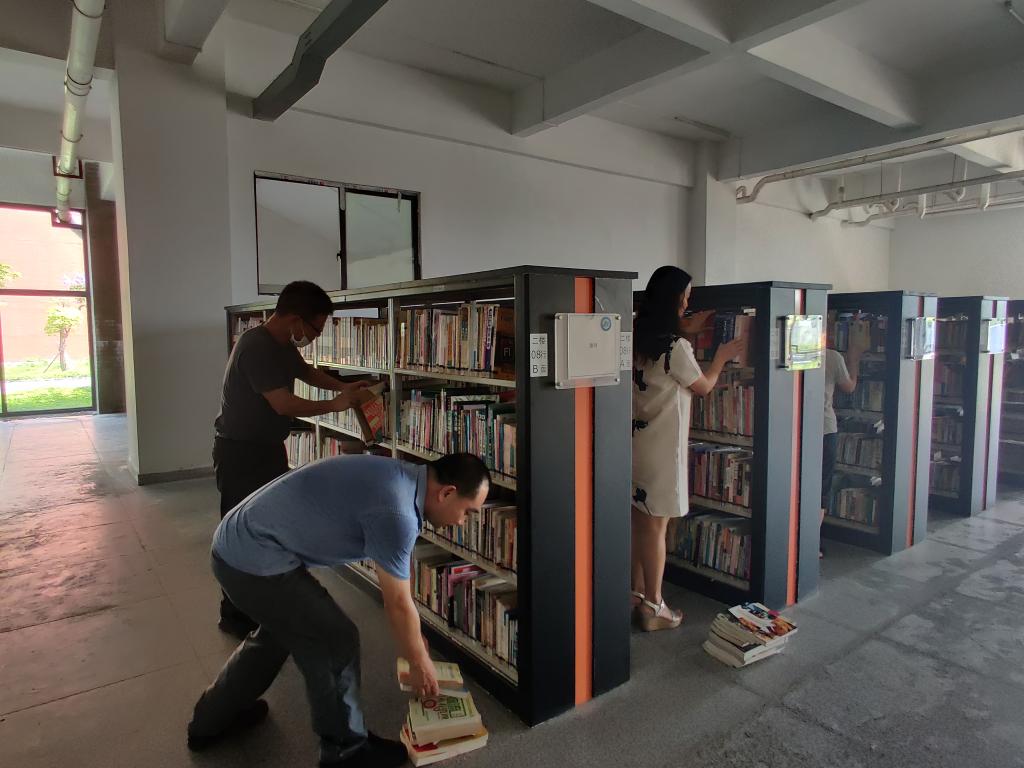 | 整理旧书不辞辛 弯腰挥汗拭纤尘 | 密集书库初建成 乐做馆中服务人 |
