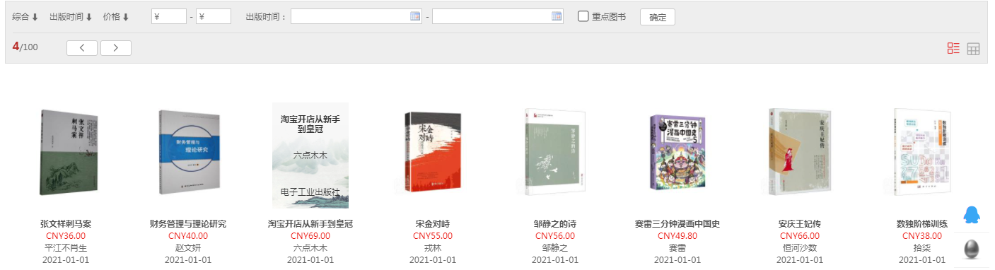1.平台可按图书的出版时间、定价排序。也可按价格区间、出版时间段、重点图书【即图书馆关注的重点出版社】进行筛选。