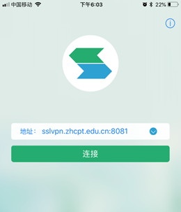 2、打开客户端输入地址sslvpn.zhcpt.edu.cn:8081并连接: