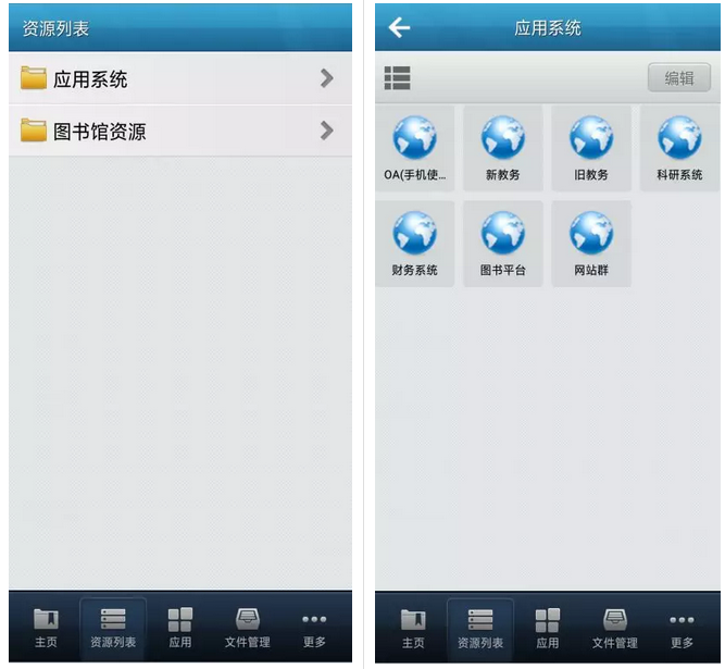 4、资源列表,选择应用系统,点击“图书平台”进入图书检索系统: