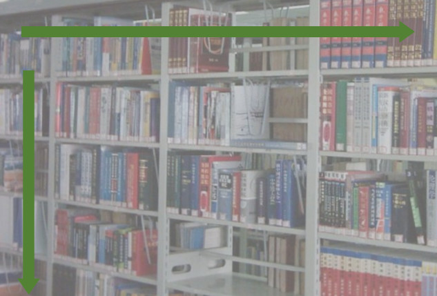 图书在书架上按照"从左到右,从上到下"的顺序排列。