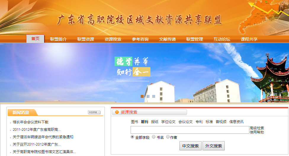 一站式的检索工具,输入一次关键词,图书馆藏纸本书刊、音像资料一网打尽!可从图书馆首页"馆藏快速查询"进入。