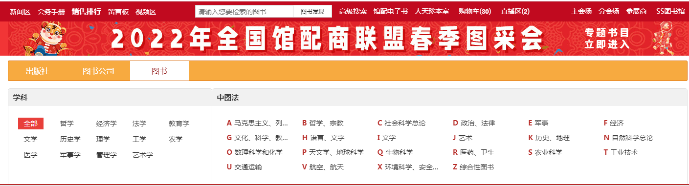 2.图书分会场:根据图书的中图法分类及学科分类展示各类图书,直接点击分类即可进入选书界面