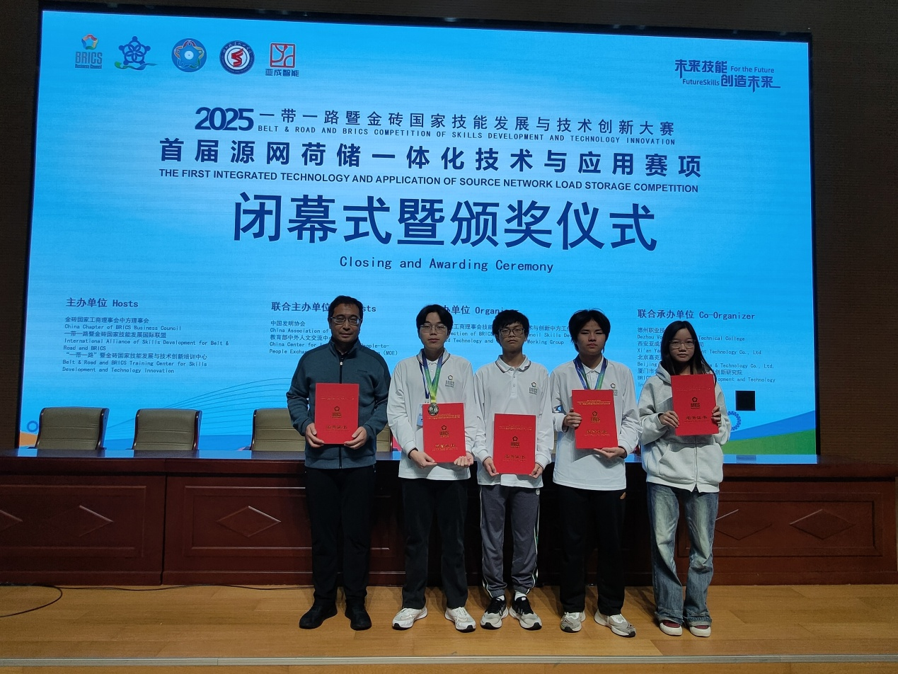 在刚刚结束的2025一带一路暨金砖国家技能发展与技术创新大赛首届源网荷储一体化技术与应用赛项全国总决赛中,由机电工程学院教师党支部精心培育、全程指导的师生团队,凭借扎实的专业功底、默契的团队协作与稳定的现场发挥,成功斩获全国总决赛二等奖,用亮眼的成绩彰显了学院高素质技术技能人才培养的坚实成效。