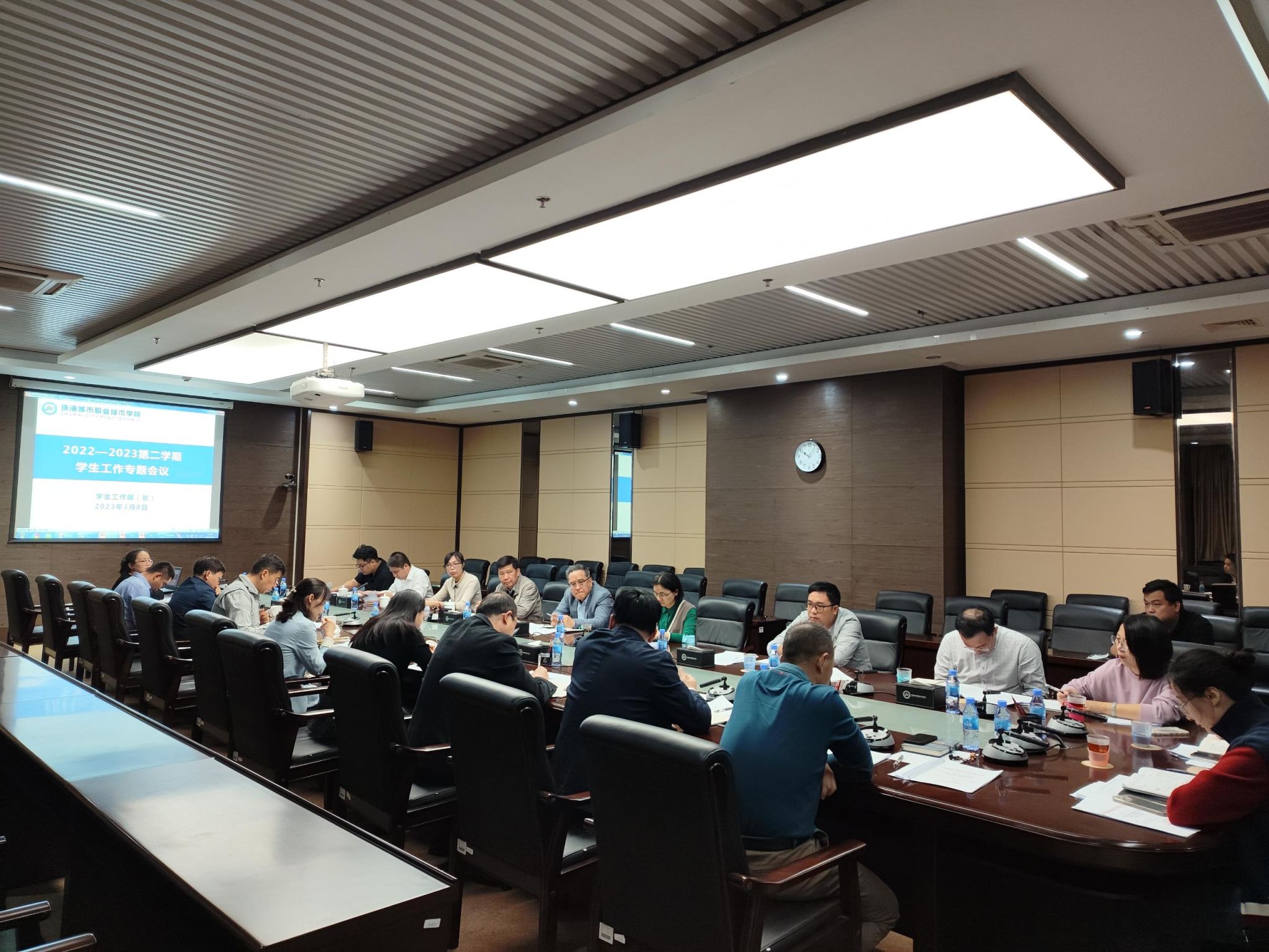 (学生工作部 报道)3月8日上午,学校在行政楼212会议室召开新学期学生工作专题会议。学校党委书记钟以俊、副校长王宇东,各二级学院党总支书记、副书记、学工组长以及学生工作部(处)全体老师参加了会议。
