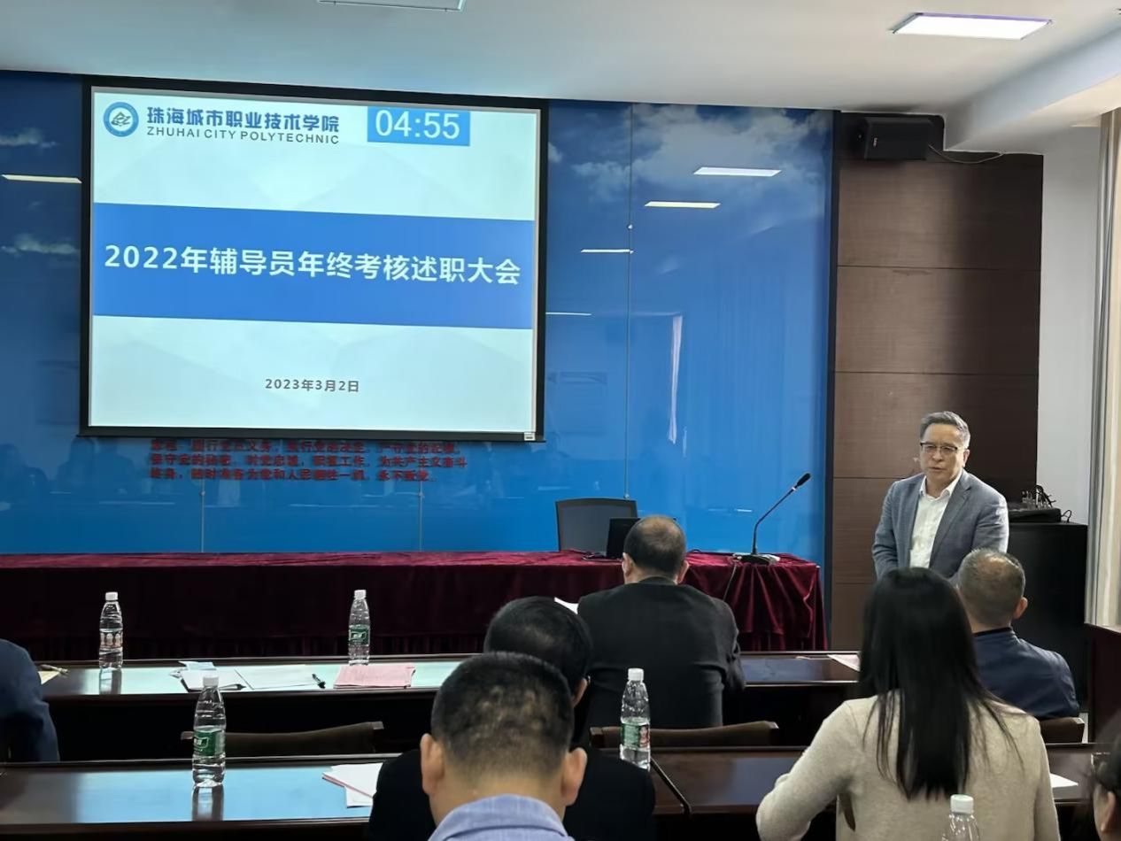 3月2日上午,我校2022年辅导员工作年终述职大会在致远楼211党员活动室举行。学校党委委员、副校长王宇东,以及各二级学院党总支书记、有关职能部门领导及全校辅导员参加了大会。