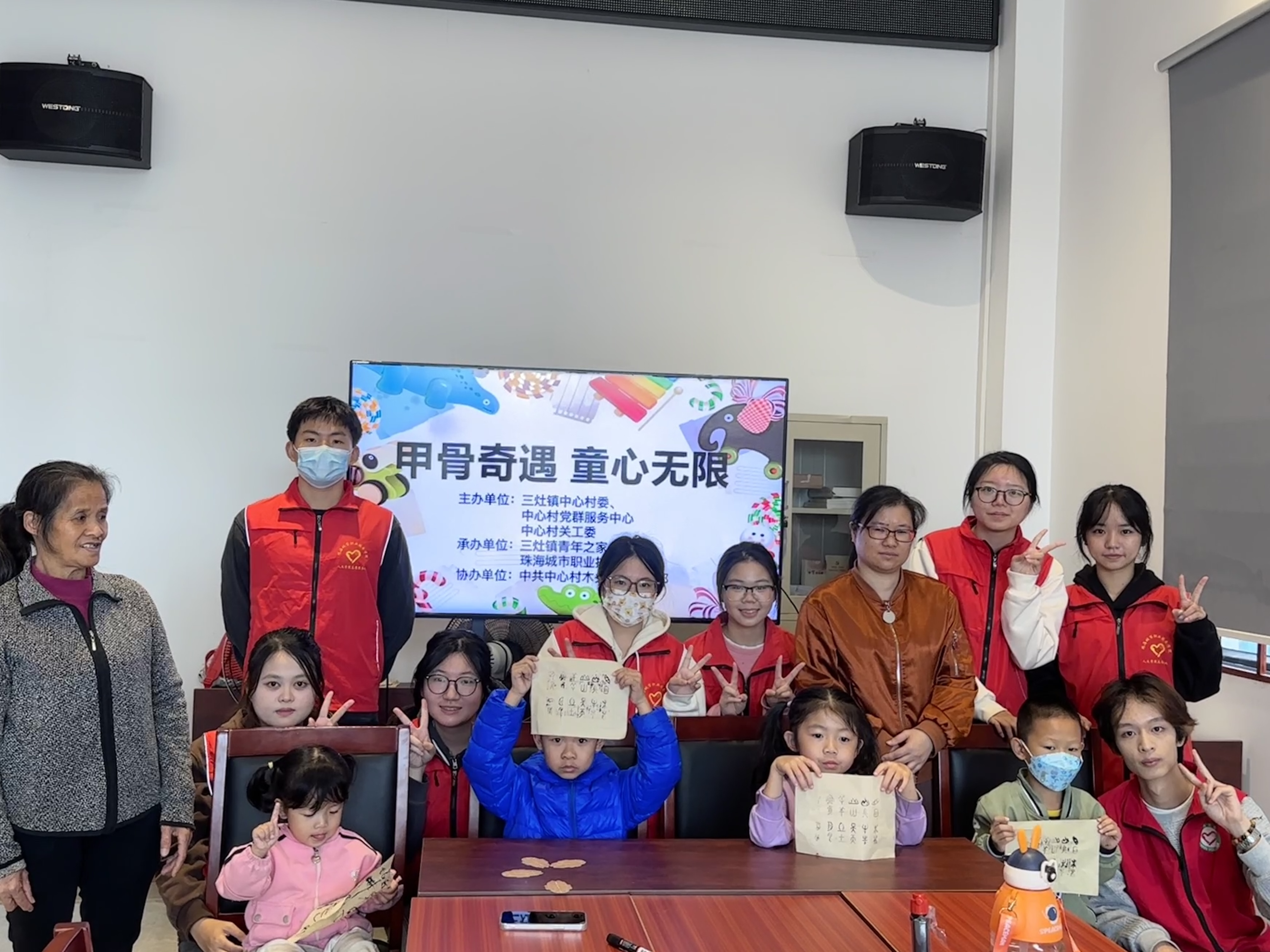 12月6日,学生志愿者们来到三灶青年之家,与小朋友们开展趣学拓印甲骨文课堂,介绍文字的形态变化,以观察写生的方式在吹塑版上展现不同的文字,锻炼小朋友们的观察能力和造型能力,感受非遗智慧,传承传统文化。(李妮 审核)
