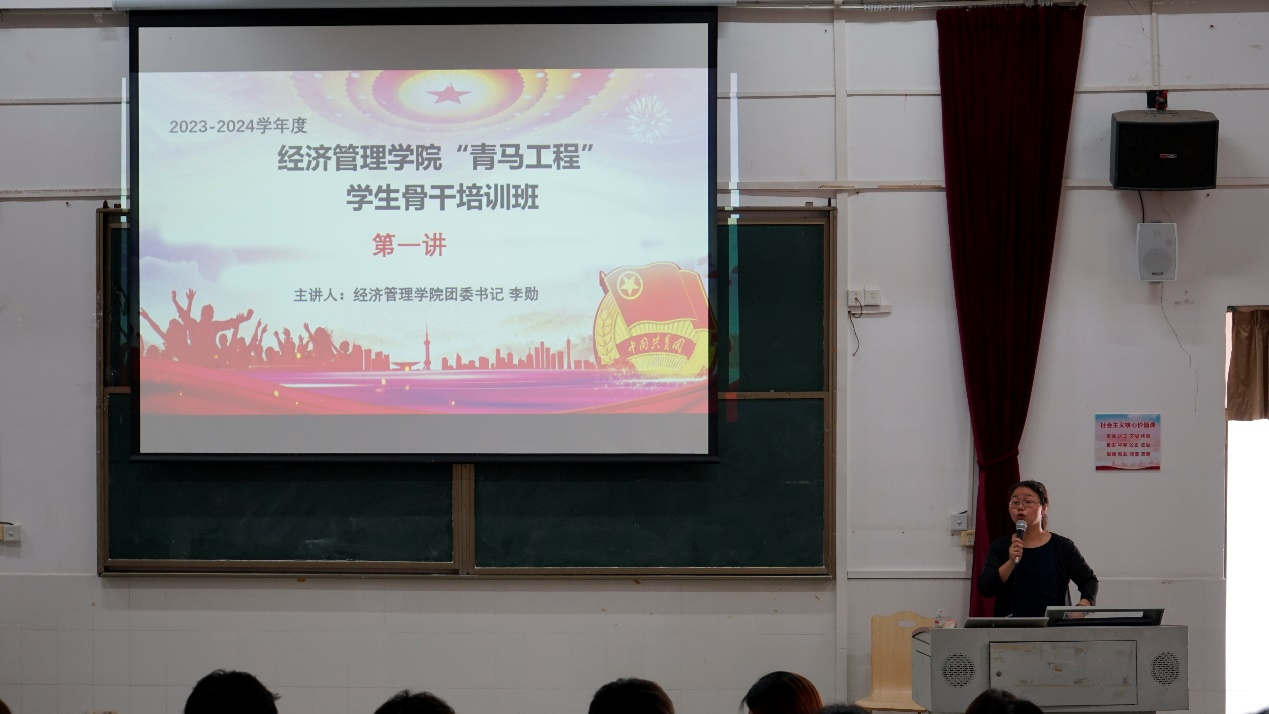 (经济管理学院 报道)为深入学习贯彻习近平新时代中国特色社会主义思想,组织并培养大学生中优秀青年马克思主义者。经济管理学院于2024年4月7日开展了以“微光成炬,青马领航”为主题的青马班开班仪式。经济管理学院党总支书记刘敏老师,党总支副书记萧琳老师,学工组组长温德志老师和全体辅导员老师参加了开班仪式。