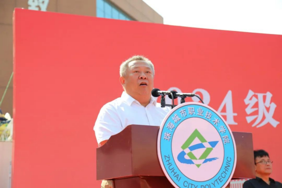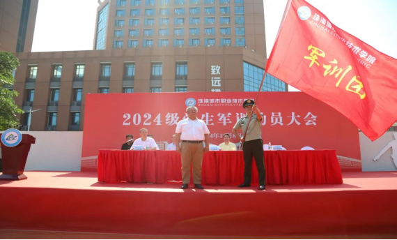 (学生工作部 报道)2024年10月8日,2024级新生军训动员大会在学校运动场上举行,武警珠海支队参谋卞新华;学校党委副书记、校长陈斗雪;学校党委委员、宣传部部长周剑平以及各二级学院党总支书记、院长参加了动员大会。大会由周剑平部长主持。