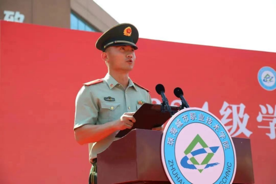 承训部队刘凯华作为教官代表发言,他强调大学军训是国防教育的重要组成部分,也是强化国防意识、培养国防后备人才的重要途径,勉励同学们要珍惜大学军训,体验部队生活,感悟军人使命,以中华民族伟大复兴为己任,做一个自信阳光、善良正直、勇敢睿智的大学生。