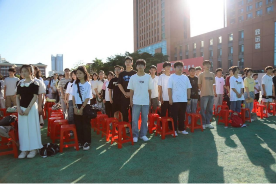上午八点整升旗仪式正式开始全体起立 奏唱国歌2024级新生满怀坚定的信心迎接未来 不断奋进