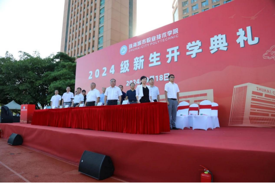 (城职学工 报道)2024年9月18号上午八点,珠海城市职业技术学院2024年新生开学典礼在学校田径场隆重举行,3323名新同学参加典礼,校长陈斗雪、校友代表林泽琴、教师代表田增愿、在校党委领导班子成员出席,各职能部门和学院负责人等出席,学校党委副书记唐顺铁主持。