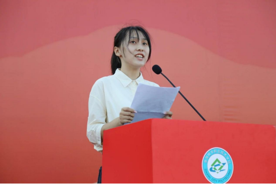 最后是新生代表詹雯静发言表示在珠海城市职业技术学院的三年学习将会是我们人生中最宝贵的财富之一我们应该以最饱满的热情,最坚定的信念,书写属于自己的精彩篇章!
