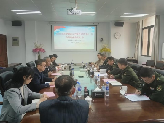 随后,双方共同为学校人民武装部建设开展交流。座谈会听取学校从武装部的组织架构、国防教育和军事理论课程建设、学生军事训练的组织开展、高校征兵工作成效等相关工作情况。朱景洲副司令对学校武装部工作给予了高度评价,认为学校领导高度重视武装部工作,在征兵工作和国防教育等方面思路清晰、举措有力、成效显著,珠海警备区、金湾区人武部将一如既往地支持学校工作,共同打造高校人武部标杆。