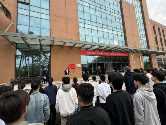 仪式伊始,珠海警备区大校副司令员朱景洲宣读《关于同意设立珠海城市职业技术学院人民武装部的批复》,珠海警备区副司令员朱景洲和学校陈斗雪校长为学校人民武装部共同揭牌,标志着学校人民武装部正式成立。