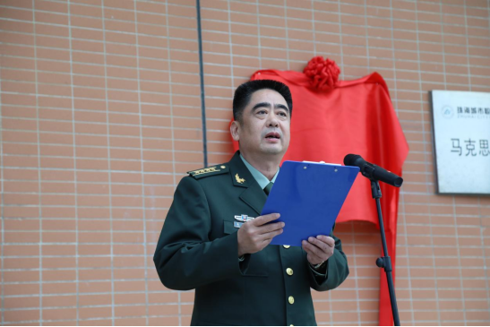 珠海警备区、金湾区人民武装部、学校领导及师生代表参加揭牌仪式