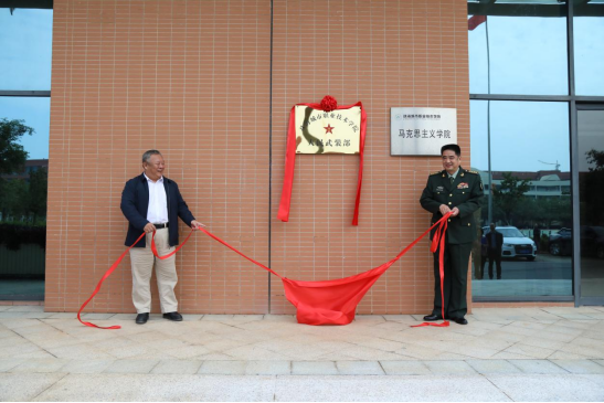 朱景洲副司令员和陈斗雪校长为学校人民武装部共同揭牌