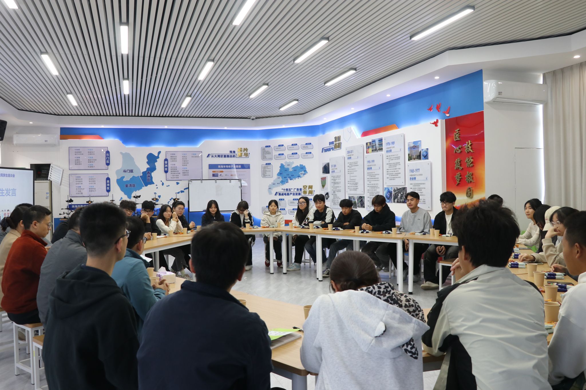 (人工智能学院 报道)2025 年 11 月 21 日,人工智能学院在格力楼召开 2025 级民族生座谈会,35 名来自土家族、维吾尔族、壮族等多个民族的新生与学院领导、辅导员及民族学长代表齐聚一堂,围绕学习适应、生活融入、就业规划等方面展开深入交流。