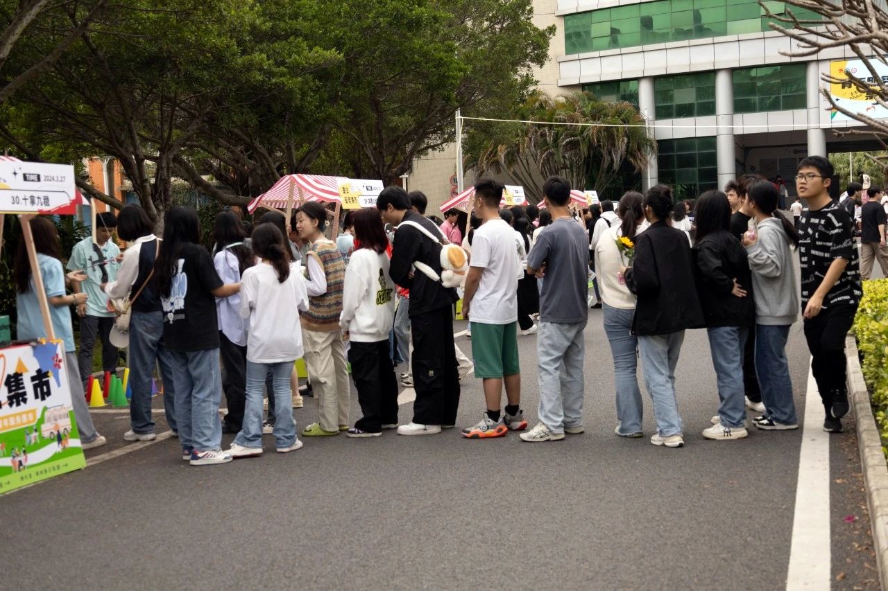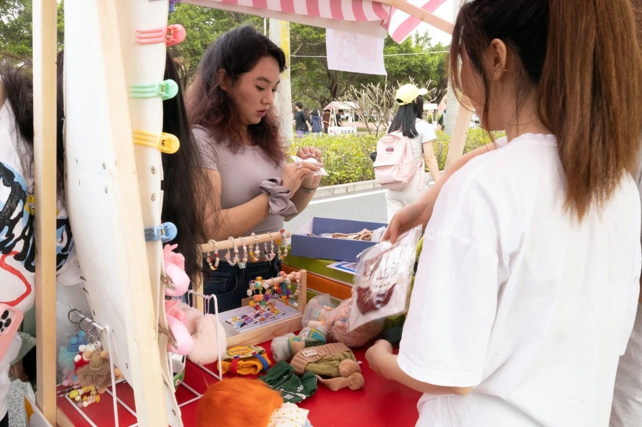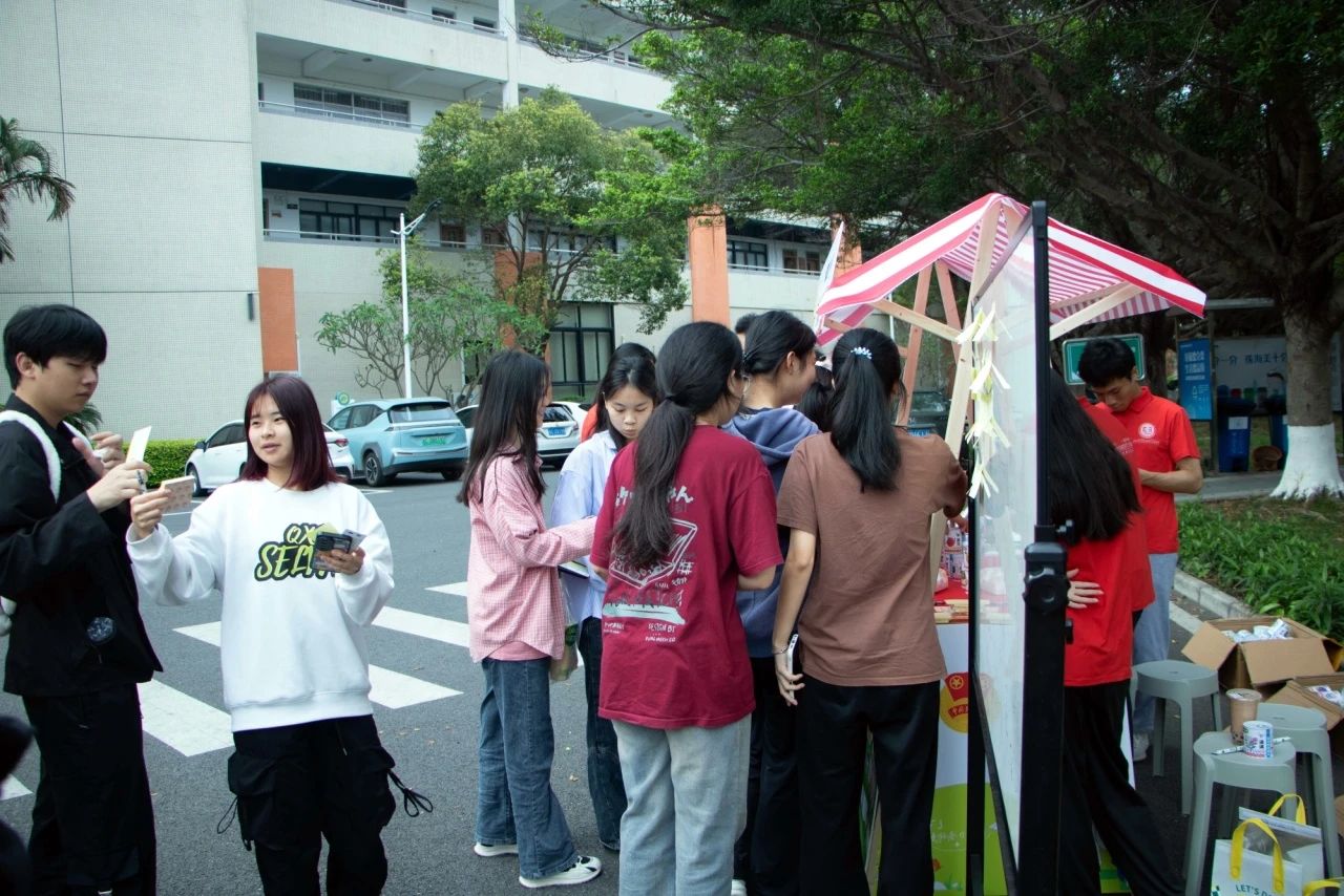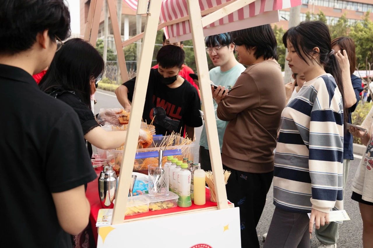 除了公益服务摊位,同学们还将亲手制作的家乡特产、创意美食、传统手工艺品、文创饰品等搬到集市,将文创展位与服务青年相结合。在各式各样的的摊位前,参观和购买的同学络绎不绝。“烟火气”在这里弥漫升腾,城职校园也焕发了新活力。