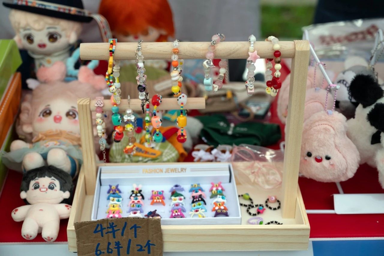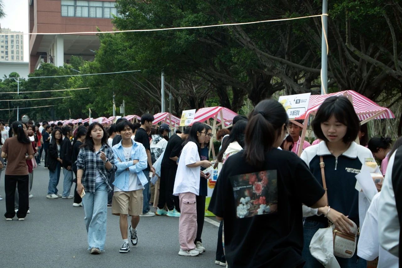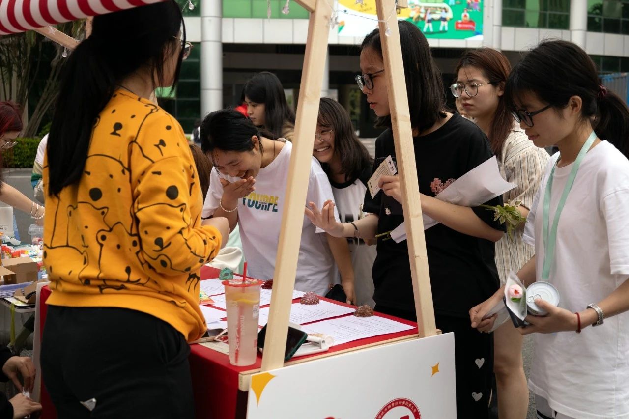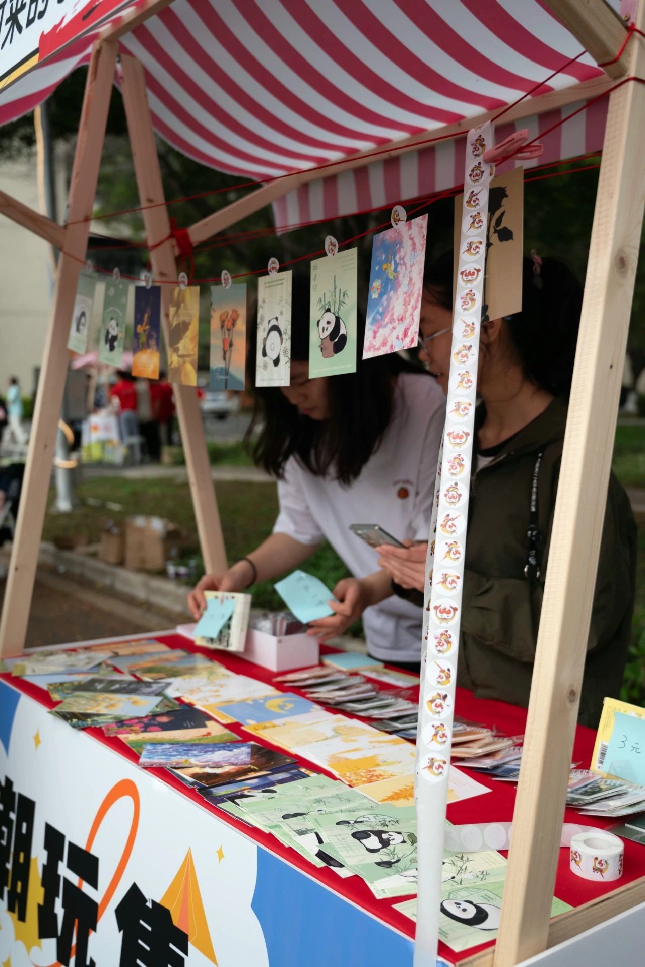 除了公益服务摊位,同学们还将亲手制作的家乡特产、创意美食、传统手工艺品、文创饰品等搬到集市,将文创展位与服务青年相结合。在各式各样的的摊位前,参观和购买的同学络绎不绝。“烟火气”在这里弥漫升腾,城职校园也焕发了新活力。