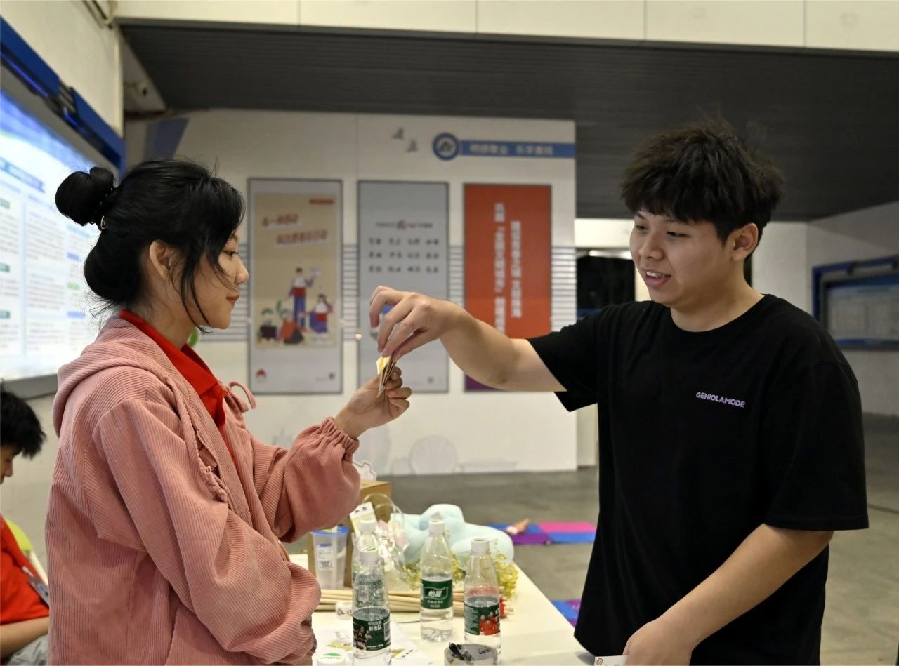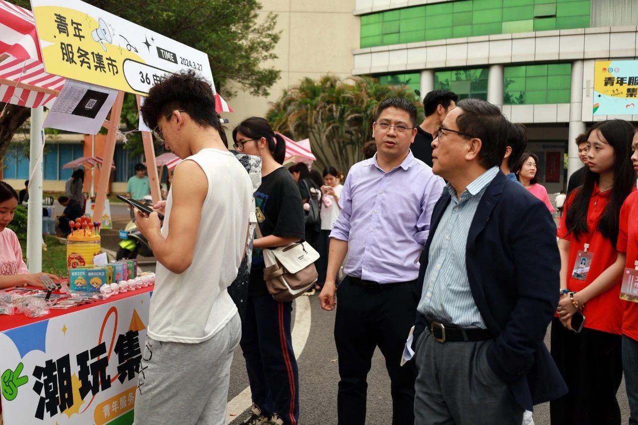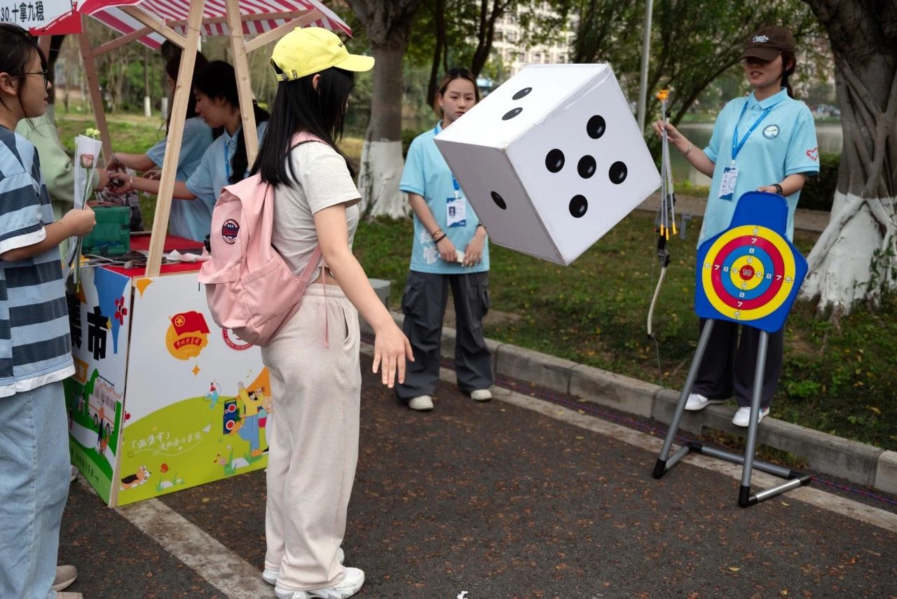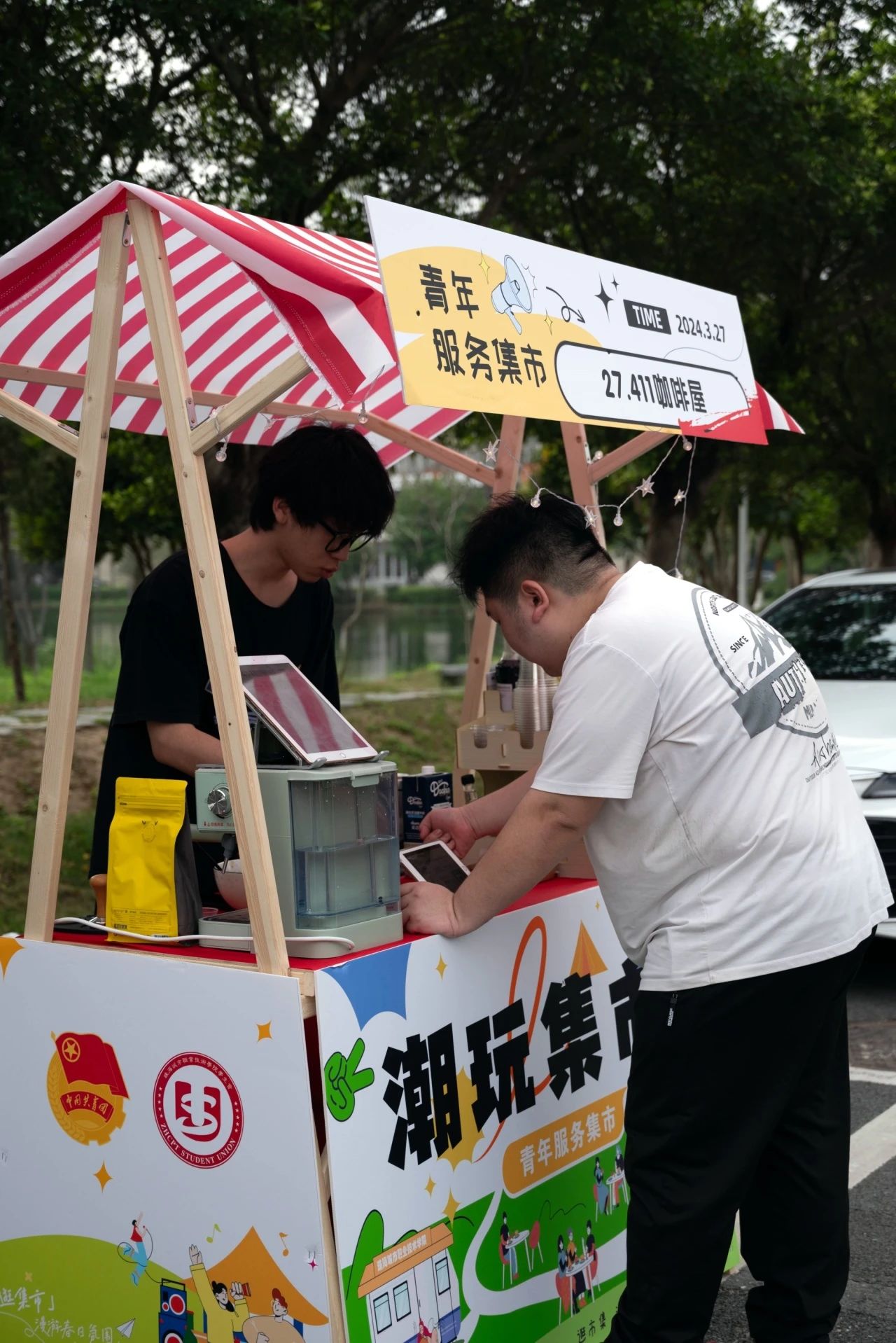 除了公益服务摊位,同学们还将亲手制作的家乡特产、创意美食、传统手工艺品、文创饰品等搬到集市,将文创展位与服务青年相结合。在各式各样的的摊位前,参观和购买的同学络绎不绝。“烟火气”在这里弥漫升腾,城职校园也焕发了新活力。