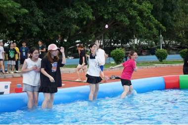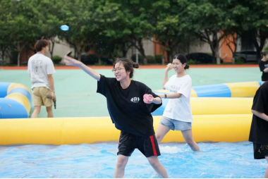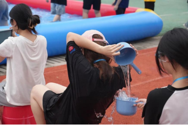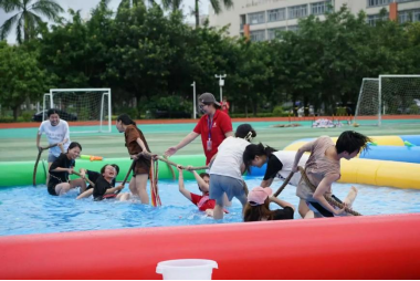 水球激战,激情四溅。大家分组对抗,躲避水球、奋力反击,最后的胜利者欢呼雀跃。