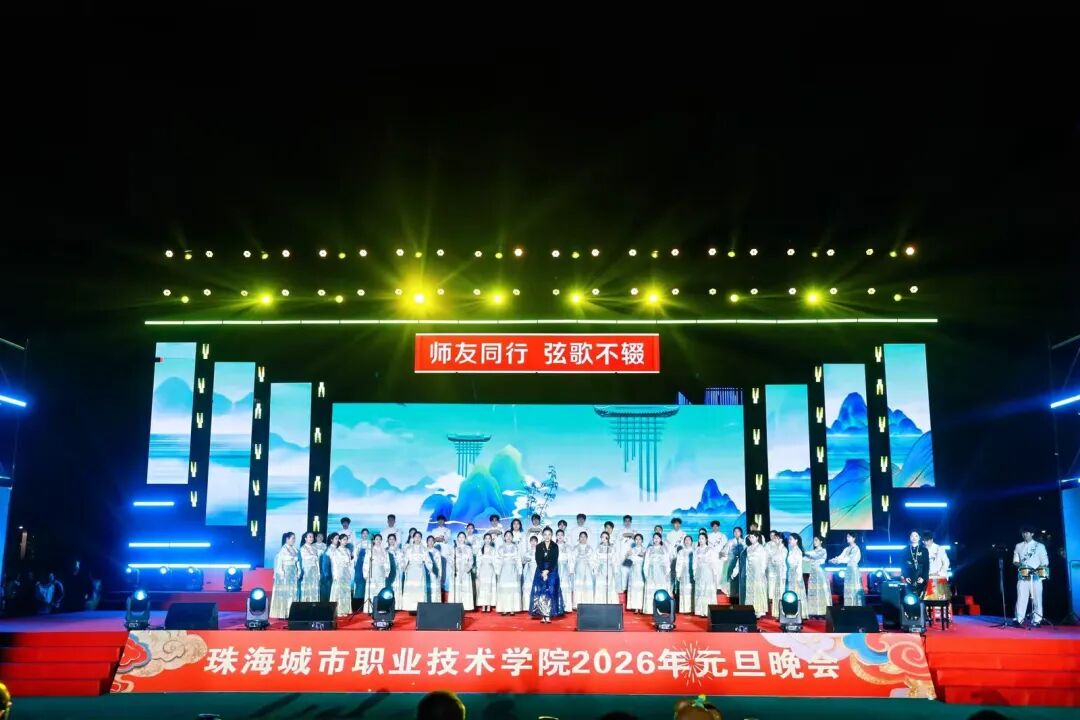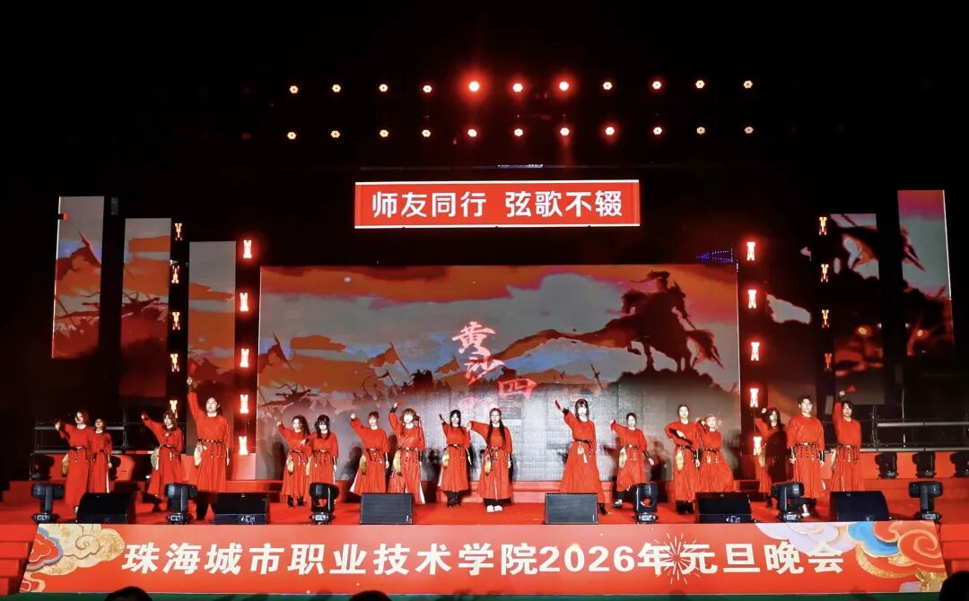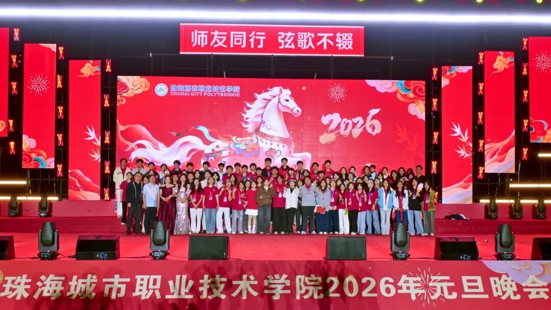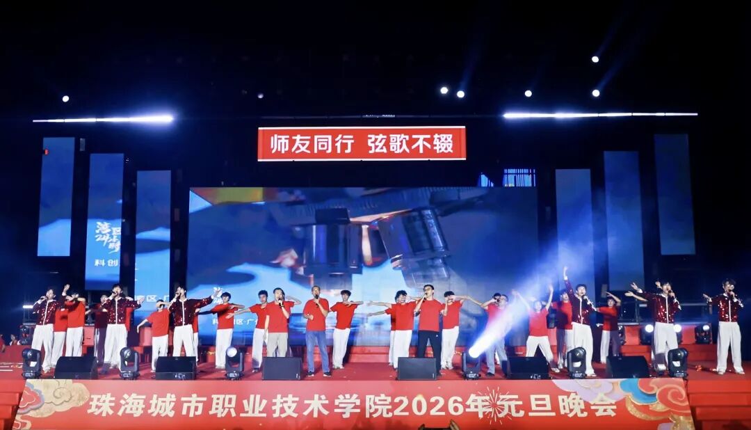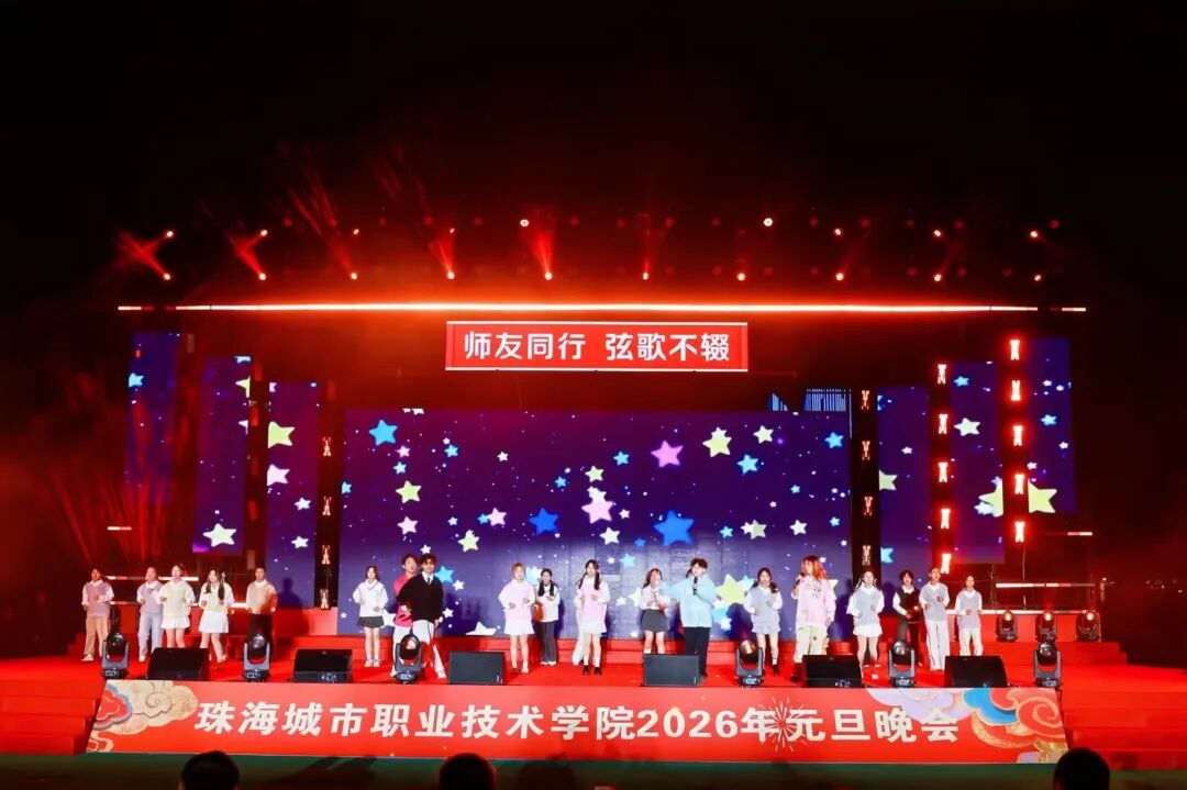 12月29日晚19:00,珠海城市职业技术学院2026年元旦晚会在足球场精彩上演。校领导陈斗雪、唐顺铁、曾建平、李军利、金焕、刘向阳与全校师生一起,欢聚一堂,喜迎新年。