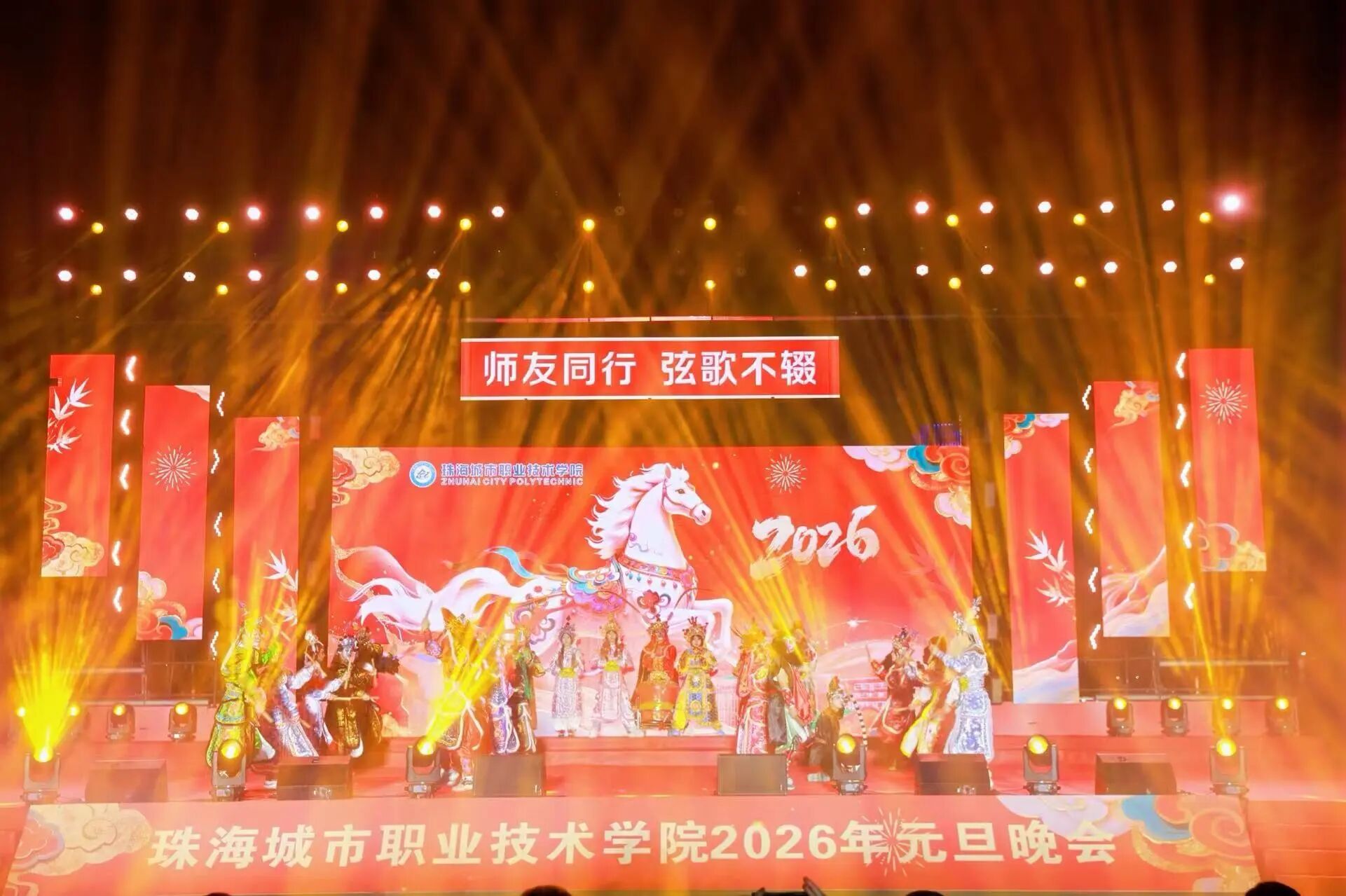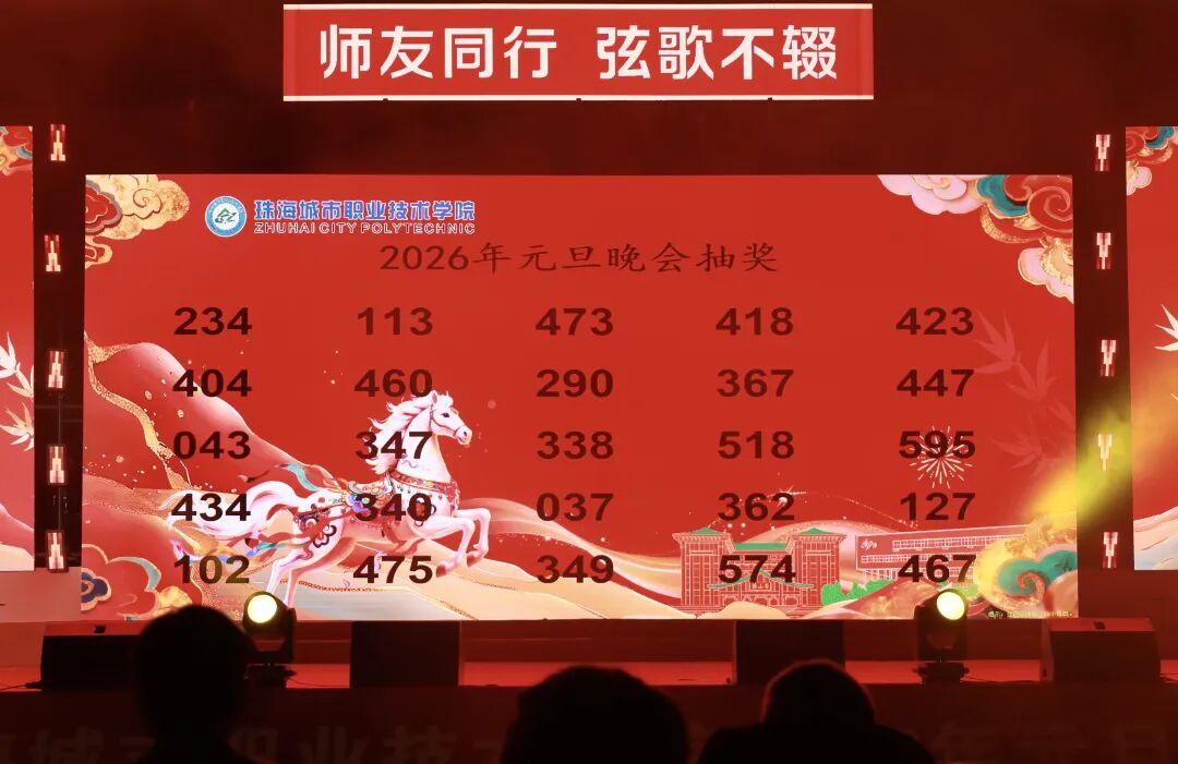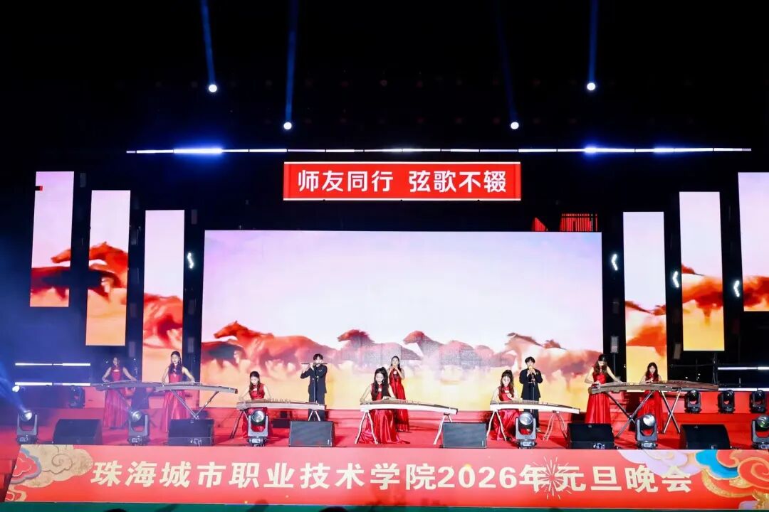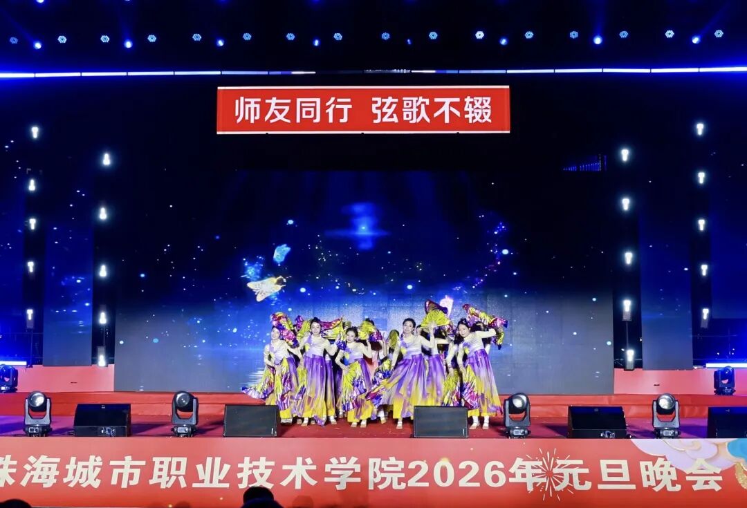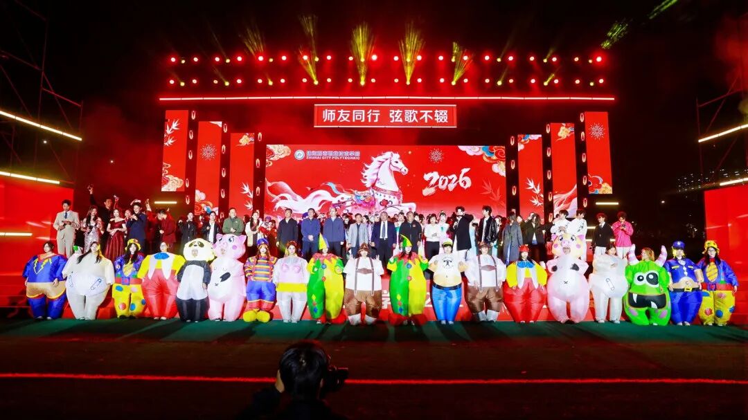 12月29日晚19:00,珠海城市职业技术学院2026年元旦晚会在足球场精彩上演。校领导陈斗雪、唐顺铁、曾建平、李军利、金焕、刘向阳与全校师生一起,欢聚一堂,喜迎新年。