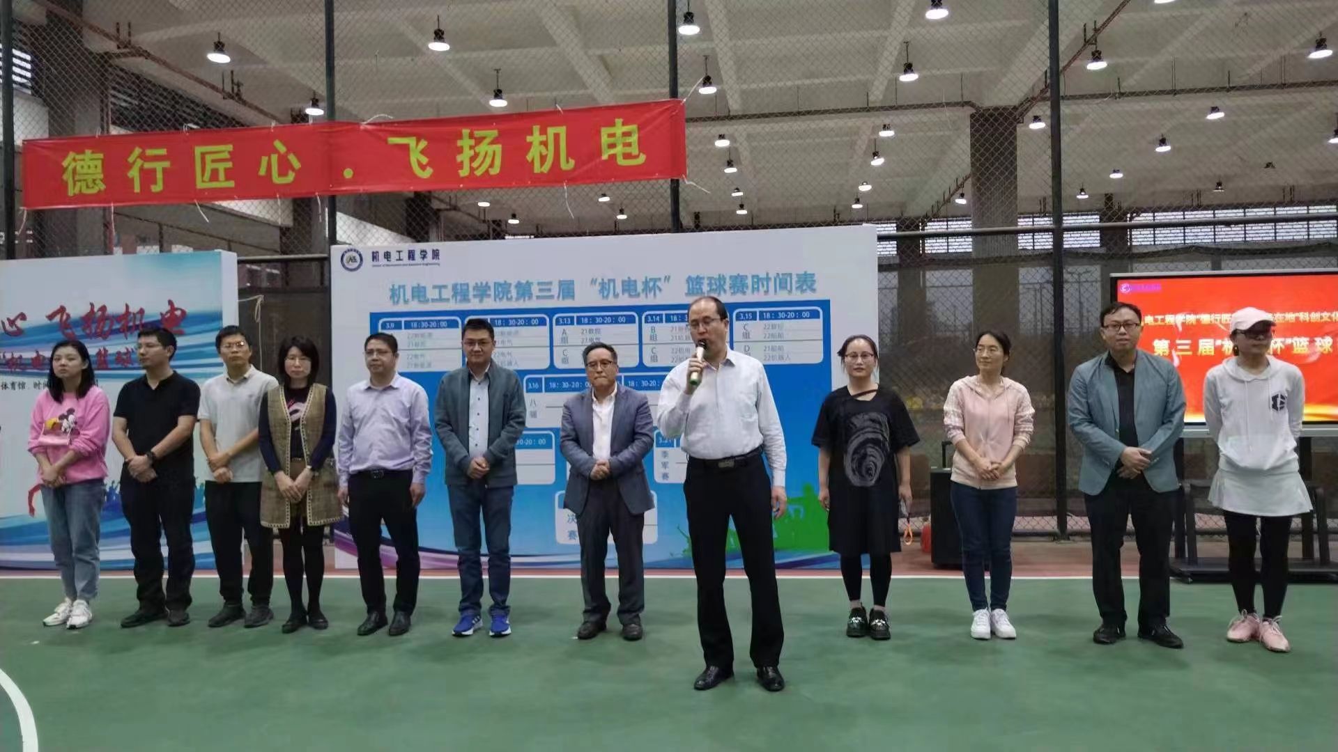 (机电工程学院 报道)3月9日傍晚,机电工程学院“德行匠新,服务在地”科创文化活动之第三届“机电杯”篮球赛开幕,王宇东副校长、叶甫能副部长出席开幕式,机电工程学院领导班子成员、全体辅导员以及各代表队参加开幕式。作为机电学院“德行匠新,服务在地”科创文化活动的重要内容,第三届篮球赛以崇于德、品于行为目标,以专业为单位,11支代表队将历时1个月开展18场赛事,以鼓励更多同学在课业之余主动走向操场、走进大自然、走到阳光下,拥抱运动,强健体魄。
