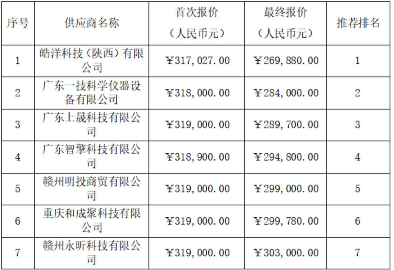 第一成交候选人:皓洋科技(陕西)有限公司,成交金额为:人民币贰拾 陆万玖仟捌佰捌拾元整(¥269,880.00);