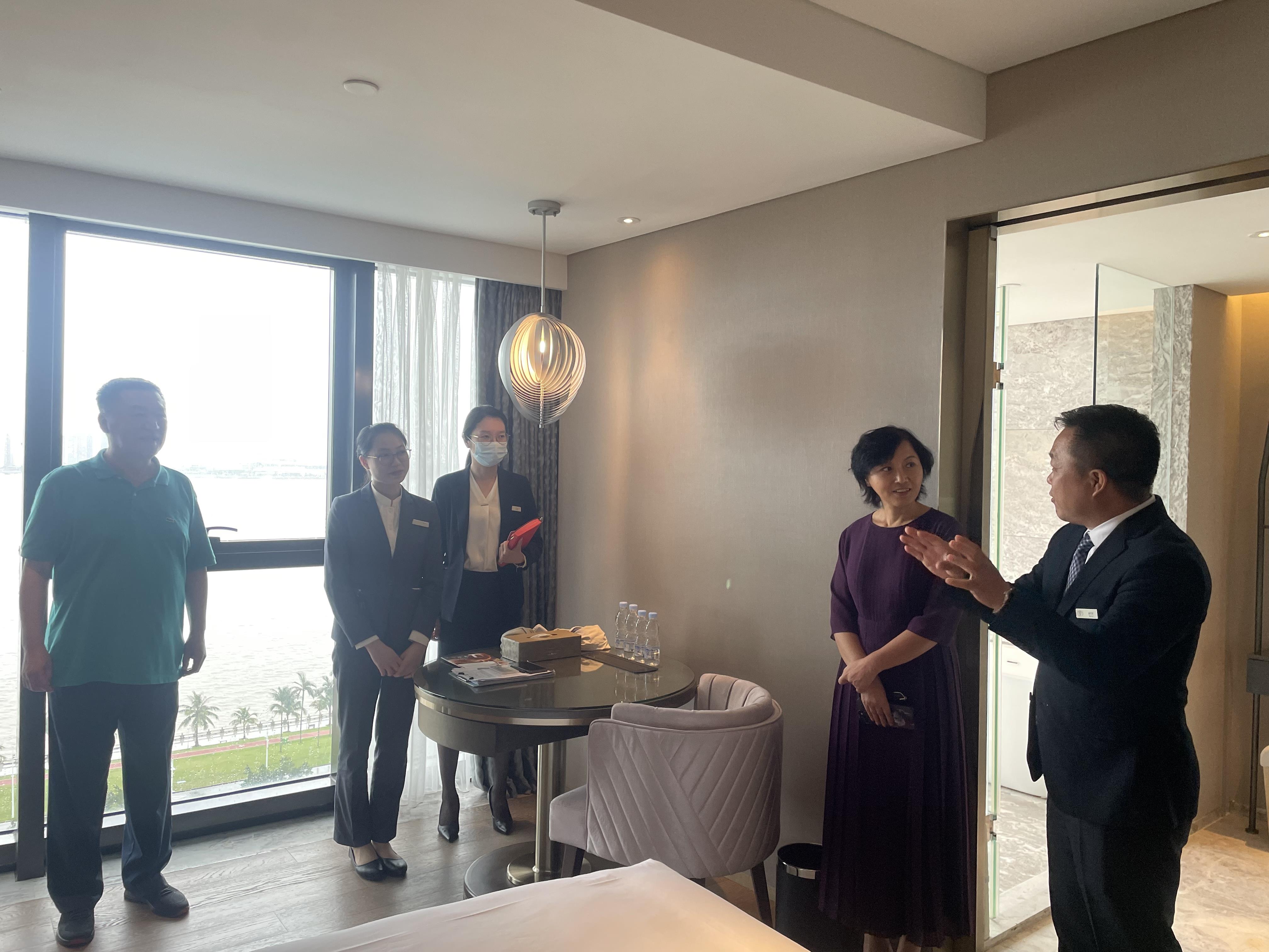 (质量管理和科研处 报道)为保证现代学徒制试点专业人才培养质量,促进产教融合,完善校企合作育人机制,6月6日下午,质量管理和科研处组织相关人员前往学校现代学徒制试点单位珠海海湾大酒店,对酒店管理与数字化运营专业现代学徒制试点工作进行专项督导。质量管理和科研处副处长徐波、专职督导吴禹春,旅游管理学院副院长李永玖、酒店管理专业主任周慧芝等参加督导活动。合作企业珠海海湾大酒店培训经理金钰淇、招聘及员工事务经理杨军武等接待督导。
